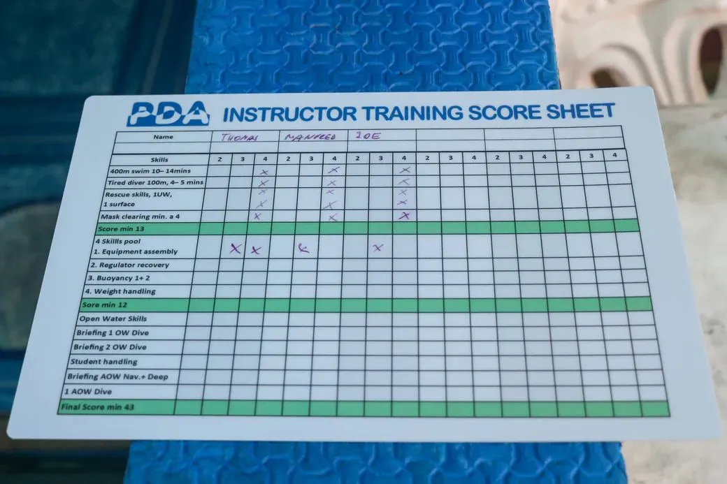 **Crossover Options:** Available for instructors from other agencies (e.g., PADI, SSI) **Prerequisites:** - PDA Divemaster (or equivalent) - Minimum 100 logged dives-current medical clearance, EFR/CPR certification within 24 months.