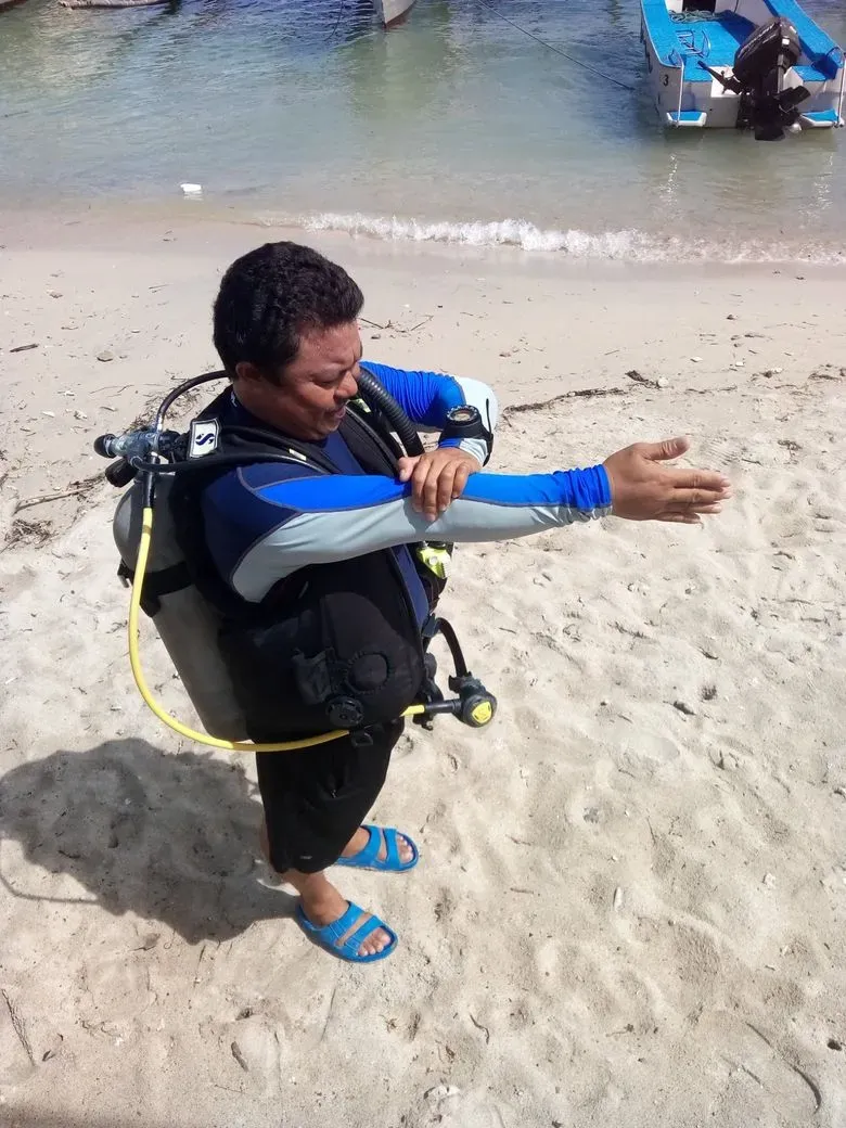 Lucas Atienza is one of the top dive guides at Octopus Divers in Puerto Galera, Philippines. Alongside his colleague Ramon, he has over 30 years of experience and thousands of dives under his belt. Lucas is known for his deep knowledge of the local dive sites and his ability to make every dive a memorable experience. Whether you're a beginner or an experienced diver, he ensures that guests get the best underwater adventure possible. Sounds like someone who truly knows the ocean inside and out! 🌊🐠